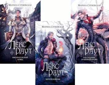 Комплект из трех книг Марины Суржевской содержит следующие произведения: «Лекс Раут. Чернокнижник» Я не афиширую род своей деятельности, не даю объявлений на столбах и не оплачиваю услуги крикливых зазывал. Я чаще отказываюсь от заказов, чем соглашаюсь на них. Мои ритуалы требуют крови, и чаще всего это кровь заказчика. Мне плевать, если вы умрете в процессе, я всегда беру оплату вперед. Так что хорошо подумайте, прежде чем постучать в мою дверь. Меня зовут Лекс Раут, я — чернокнижник. «Лекс Раут. Императорский ловец» Из чернокнижника — в императорские ловцы? Ужасно, но лучше, чем петля на шее! Но вот чует моя черная душонка в этом предложении какой-то подвох... Да и быть темным магом в Бастионе ловцов — худшее, что можно придумать. Правда, выбора у меня нет, так что... Меня зовут Лекс Раут. Я — императорский ловец. «Лекс Раут. Наследник огненной крови» Спас мир — стал героем? Да как бы не так! Мир я, конечно, спас, да вот только в герои меня никто не записывает. Кайер встретил неласково, ловцы грозят лишением силы наследники трона куда-то пропали, и проклятая Одри не желает меня вспоминать. А разгребать все это снова придется мне. Меня зовут Лекс Раут. И только Изнанка знает, кто я.