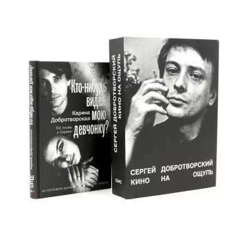 Комплект из 2 книг: «Кто-нибудь видел мою девчонку?» Карина Добротворская — театровед по образованию, журналист и издатель по роду занятий. С 2013 по 2021 гг. президент и редакционный директор Brand Development, Cond? Nast International. «Они считались самой красивой парой богемного Петербурга начала девяностых — кинокритик и сценарист Сергей Добротворский и его юная жена Карина. Но счастливая романтическая история обернулась жестким триллером. Она сбежала в другой город, в другую жизнь, в другую любовь. А он остался в Петербурге и умер вскоре после развода. В автобиографической книге „Кто-нибудь видел мою девчонку? 100 писем к Сереже“ Карина Добротворская обращается к адресату, которого давно нет в живых, пытается договорить то, что еще ни разу не было сказано. Хотя книга написана в эпистолярном жанре, ее легко представить в виде захватывающего киноромана из жизни двух петербургских интеллектуалов, где в каждом кадре присутствует время». (Сергей Николаевич, «СНОБ») «Кино на ощупь: сборник статей: 1988-1997» В книгу вошло более ста текстов российского критика Сергея Добротворского (1959-1997) по истории и теории кино: академические статьи, журнальные эссе, газетные рецензии и расшифровки лекций.