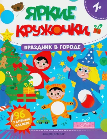 «Праздник в городе: книжка с наклейками (96 наклеек)»: Серия «Яркие кружочки» — это отличные книжки с наклейками для малышей, в которых вы найдёте симпатичных персонажей, красочные иллюстрации, расширяющую кругозор информацию и, конечно, много наклеек! КАК РАБОТАТЬ С ЭТОЙ КНИЖКОЙ? 1. Предложите малышу рассмотреть картинку и назвать, что он видит. 2. Вытащите страницы с наклейками из середины книжки и положите перед ребёнком: так ему будет удобнее подбирать нужные варианты. 3. Вместе обсудите, каких кружочков не хватает на картинке. Назовите цвета. 4. Подберите недостающие кружочки и приклейте. Не забывайте отмечать успехи малыша — это замотивирует и вдохновит его. Так, увлечённый игрой с наклейками, ребёнок незаметно для себя будет тренировать мелкую моторику, запоминать цвета, анализировать и логически мыслить.
