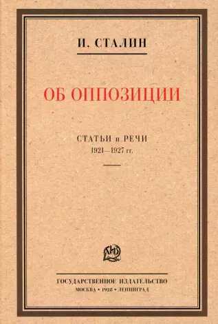 Автор: Сталин Иосиф, «Об оппозиции. Статьи и речи 1921-1927 гг.: сборник»: