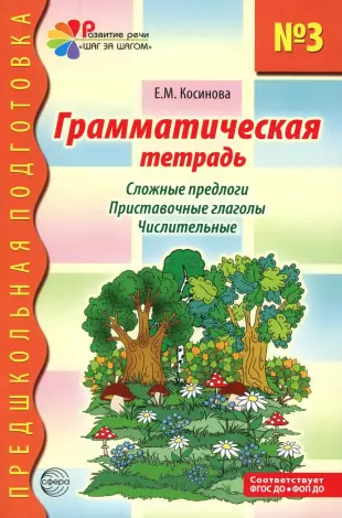 Автор: Косинова Елена, «Грамматическая тетрадь № 3 для занятий с дошкольниками. Сложные предлоги. Приставочные глаголы. Числительные. 2-е изд»: