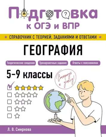 Вам нужно подготовиться к ОГЭ и ВПР по географии, но не знаете, с чего начать? Хотите закрепить полученные в школе знания, не тратя время на лишнюю информацию в учебниках? Тогда эта книга именно для вас! В ней вас ждет: • только нужная теория; • наглядные таблицы и схемы; • полезные подсказки и рекомендации; • решение реальных заданий; • возможность проверить свои знания. В пособии систематизирована информация, которая поможет школьникам написать ВПР, ОГЭ и другие виды итоговых работ. В справочнике вы увидите не сплошной поток текста, а доступную теорию, которая будет подкрепляться практическими заданиями. Книга станет идеальным помощником для школьников 5, 6, 7, 8 и 9 классов, репетиторов и учителей. Также она будет полезна для занятий родителей с детьми. Начните эффективную подготовку к экзаменам 2026 прямо сейчас!