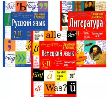 • Справочник в таблицах. Русский язык. Литература. Немецкий язык. 7-11 кл. (комплект из 3-х книг)