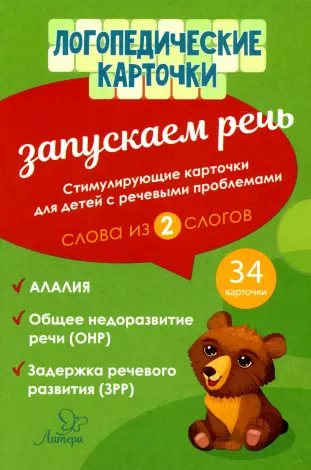 «Логопедические карточки. Запускаем речь. Слова из 2 слогов. (34 карточки)»: