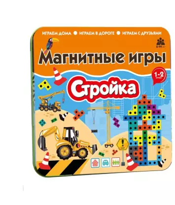 Магнитная игра «Стройка» упакована в прочную металлическую коробку и специально разработана для того, чтобы не скучать во время долгой дороги. Фишки держатся на поле с помощью магнитов. В игру можно играть одному или с друзьями. Если игрок один, он может строить из фишек фигуры различного транспорта по образцам в инструкции. Чтобы правильно подобрать фишки, придётся постараться! Если игроков двое, нужно по очереди подбирать фигурные фишки так, чтобы они заполнили всё игровое поле. Это очень весело! Всегда берите с собой такую игру, и вам нигде не придётся скучать. Игра рассчитана на 1-2 игрока. Сложите все строительные блоки в кучу и доставайте их по очереди. Первым выставляет свой блок младший игрок. Задача второго игрока — поставить свой блок так, чтобы одна из сторон касалась уже выставленного блока. Проигрывает тот, кто не сможет поставить свой блок на поле. Чтобы играть было интереснее, тяните цветные фишки не глядя. В комплекте: металлическая коробка с магнитным полем, магнитные фишки, правила игры, лист с идеями игр в дорогу.