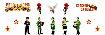 • Комплект для оформления интерьера со скотчем. Спасибо за победу! (фигурный плакат А3, 2 фигурных плаката А4, 2 звезды по 2 шт.)